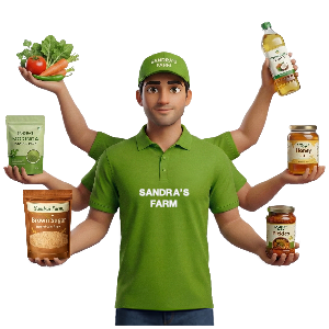 Sandra’s Farm was launched with the ambition of making everyday essentials available in minutes while supporting local farmers and sustainable agriculture in India. Our purpose is to build a transparent and ethical supply chain that connects farmers directly with consumers, ensuring fair pricing for growers and premium quality products for families.